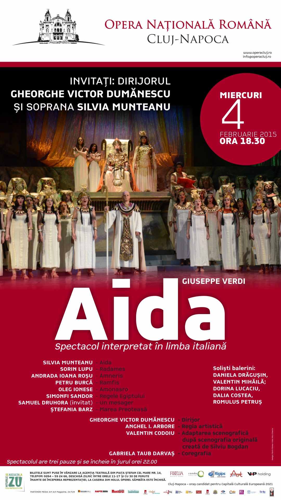 Opera Naţională Română din Cluj-Napoca în parteneriat cu Asociația ”Fidelia-bucuria operei” și Primăria Municipiului Cluj-Napoca, au deosebita plăcere de a vă invitala cel mai grandios, strălucitor și magic Concert de Crăciun al anului, susținut vineri, 19 decembrie, ora 19.00, la Sala Polivalentă din Cluj-Napoca. Invitații speciali ai evenimentului sunt distinșii artiști Grigore Leșe și Marcel Pavel.