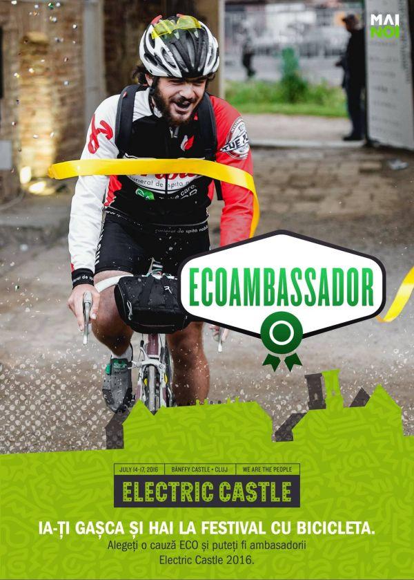 Studiile internaționale arată că 75% din amprenta de carbon a unui festival de muzică este generată de modul în care participanții călătoresc spre locul evenimentului. „Încurajăm cât mai mulți oameni să folosească bicicleta – atât pentru a veni la festival, cât și în viața de zi cu zi. Este unul din cele mai simple și de efect moduri de a proteja mediul, dar și propria sănătate și condiție fizică. Anul trecut, 12 persoane din România și Republica Moldova au fost eco ambasadori. În 2016, continuăm să răsplătim folosirea transportului alternativ și să le oferim celor care au propria cauză ecologistă să o promoveze într-un mod inedit și eficient, venind cu bicicleta la festival”, spune Andi Vanca, manager de comunicare ELECTRIC CASTLE.