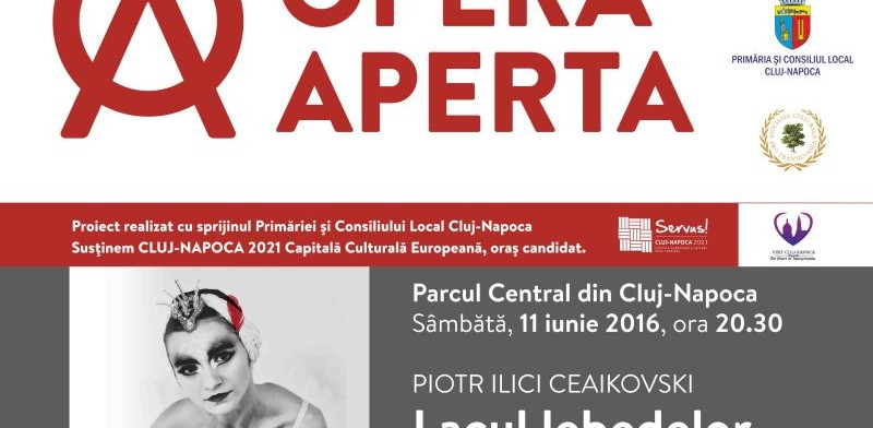 Primul eveniment al trilogiei ”Opera Aperta 2016”, spectacolul de balet ”Lacul Lebedelor”, de P. I. Ceaikovski, conferă o nouă tușă plutirii dansante a Ansamblului de balet clujean, care va glisa în mod real pe apă! Premiera evenimentului este constituită tocmai de realizarea sa pe două scene special amenajate în Parcul Central al orașului: prima scenă este construită pe Lacul Chios, completată de cea de-a doua, amplasată pe esplanada Casino Centru de Cultură Urbană. Feeria evenimentului, trăirea autentică a publicului alături de balerini și pășirea în povestea pusă pe note de P.I. Ceaikovski va fi completă și emoționantă, construită de artiștii distribuției sub clar de lună, printre trestiile închipuite doar până acum la auzul celebrei partituri. Feeria spectacolului de balet va fi întregită de efecte spectaculoase de lumini, care vor ilumina întregul parc.