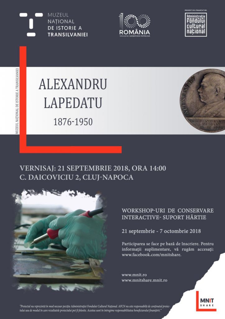 “Vă invităm vineri, 21 septembrie, ora 14:00 pentru vernisarea expoziţiei Alexandru Lapedatu (1876 – 1950), primul eveniment din această serie de manifestări, care va aduce în atenţia publicului cele mai valoroase bunuri culturale aparţinând fondului personal Alexandru Lapedatu.