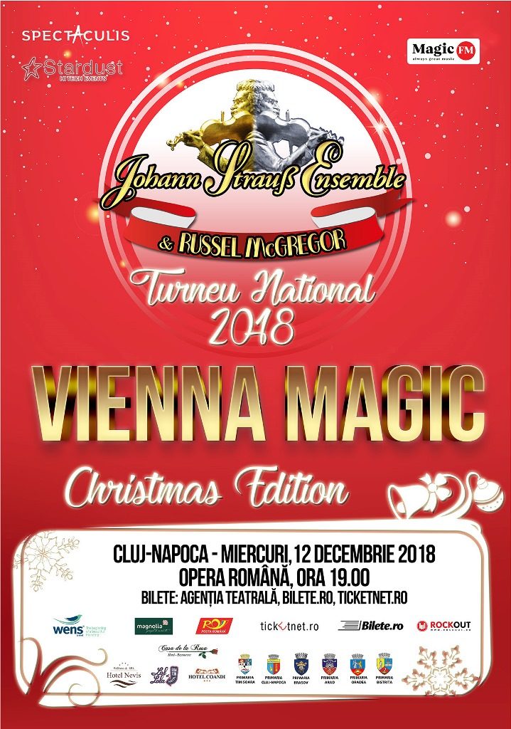 Johann Strauss Ensemble, ansamblul artistic din componența căruia fac parte unii dintre cei mai talentați muzicieni din Austria, revine în prezența iubitorilor de muzică clasică din țara noastră alături de charismaticul dirijor Russell McGregor, într-un nou turneu național intitulat „VIENNA MAGIC – CHRISTMAS EDITION”.