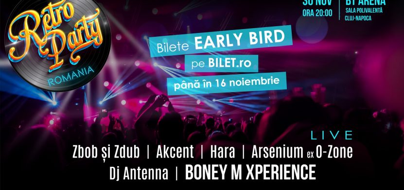 În ajunul Zilei Naționale, pe 30 noiembrie, clujenii își dau întâlnire la Retro Party Romania. Pe scena de la Sala Polivalentă BT Arena vor urca Zdob și Zdub, Akcent, Arsenium (ex-O-Zone), Trupa Hara, trupa Boney M. Xperience, dar și DJ Antenna cu un super show de remixuri ale hiturilor retro.