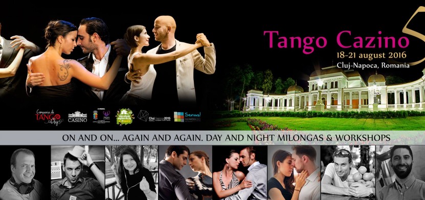 Compania de Tango Cluj – Horia Călin Pop & Ioana Lascu anunţă o nouă ediţie, a cincea, a evenimentului TANGO CAZINO. Acesta va avea loc în perioada 18 – 21 august 2016, şi va cuprinde 4 zile și 4 nopți de milongas, workshop-uri & spectacole.
